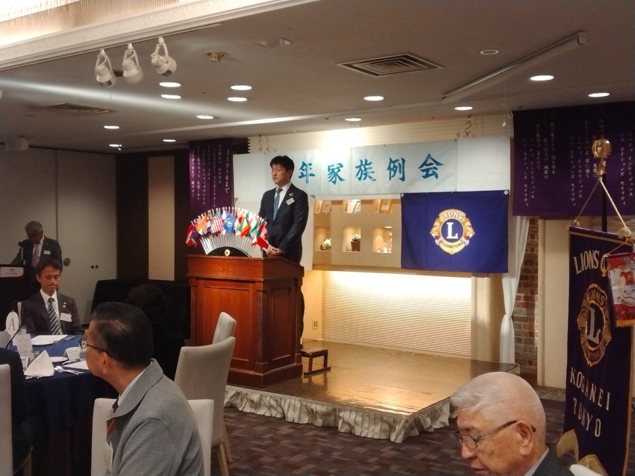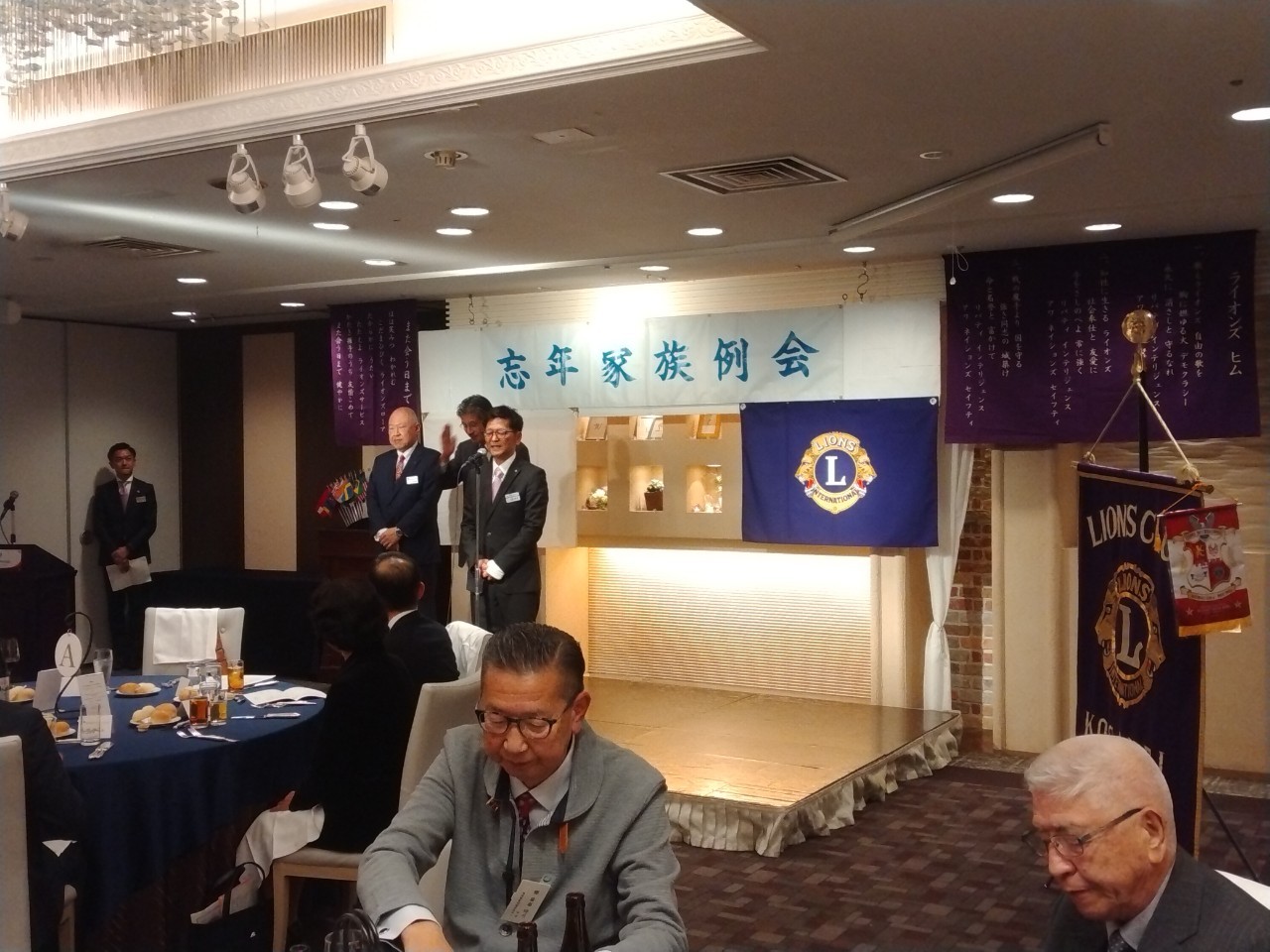 第一部は星野幹事司会の元、開会のゴング、国家斉唱、ライオンズヒム斉唱、渡邊会長の挨拶、清水会計から来賓紹介来賓挨拶を立川LC 森山Lより頂きました。