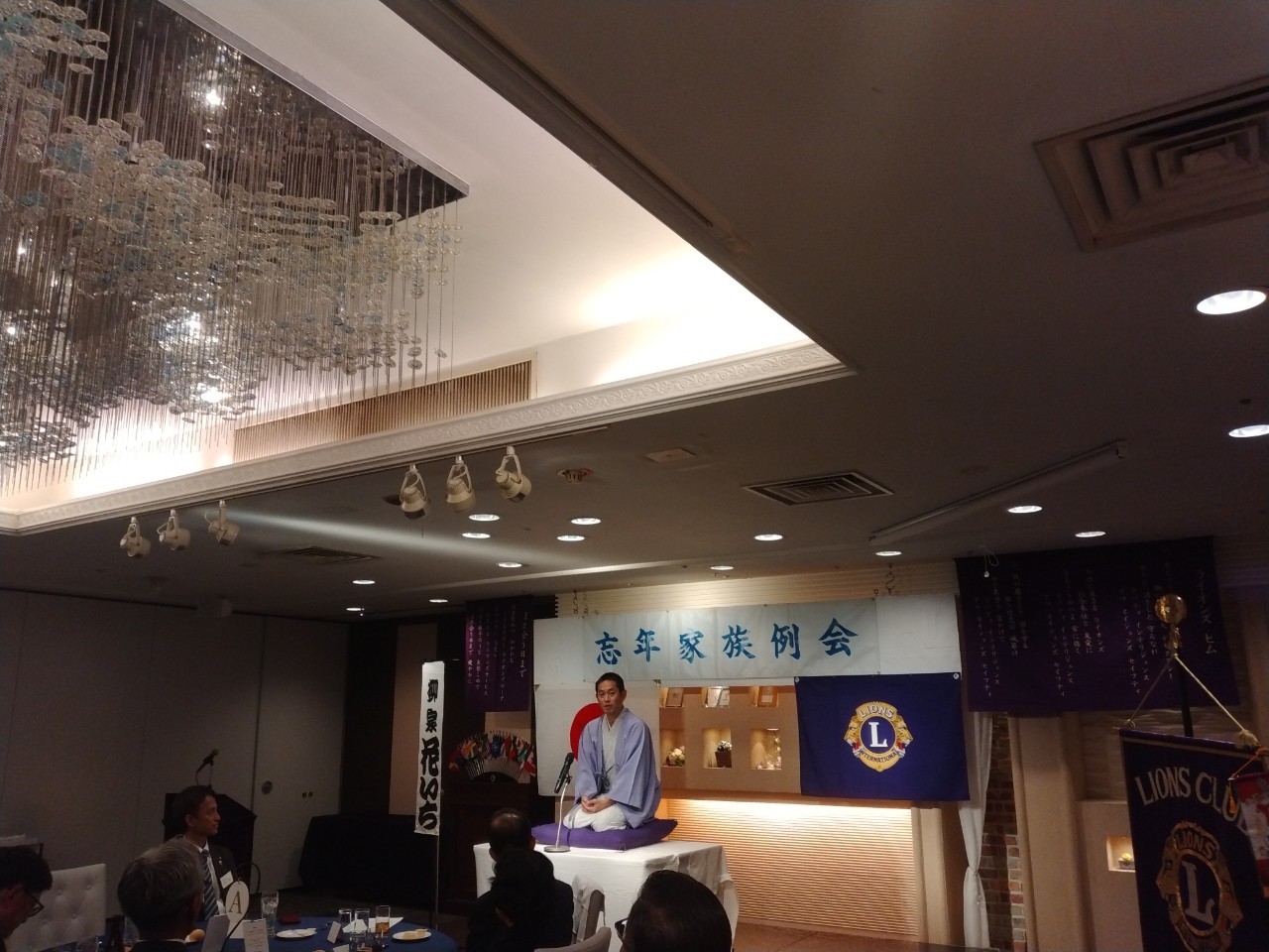 そしてお待ちかねの余興です。今回は柳家家禄一門「柳家花いち師匠」をお迎えして落語を一席。枕小噺から古典『皿屋敷』を披露いただきツボに入った参加者の笑い声が絶えない一席となりました。